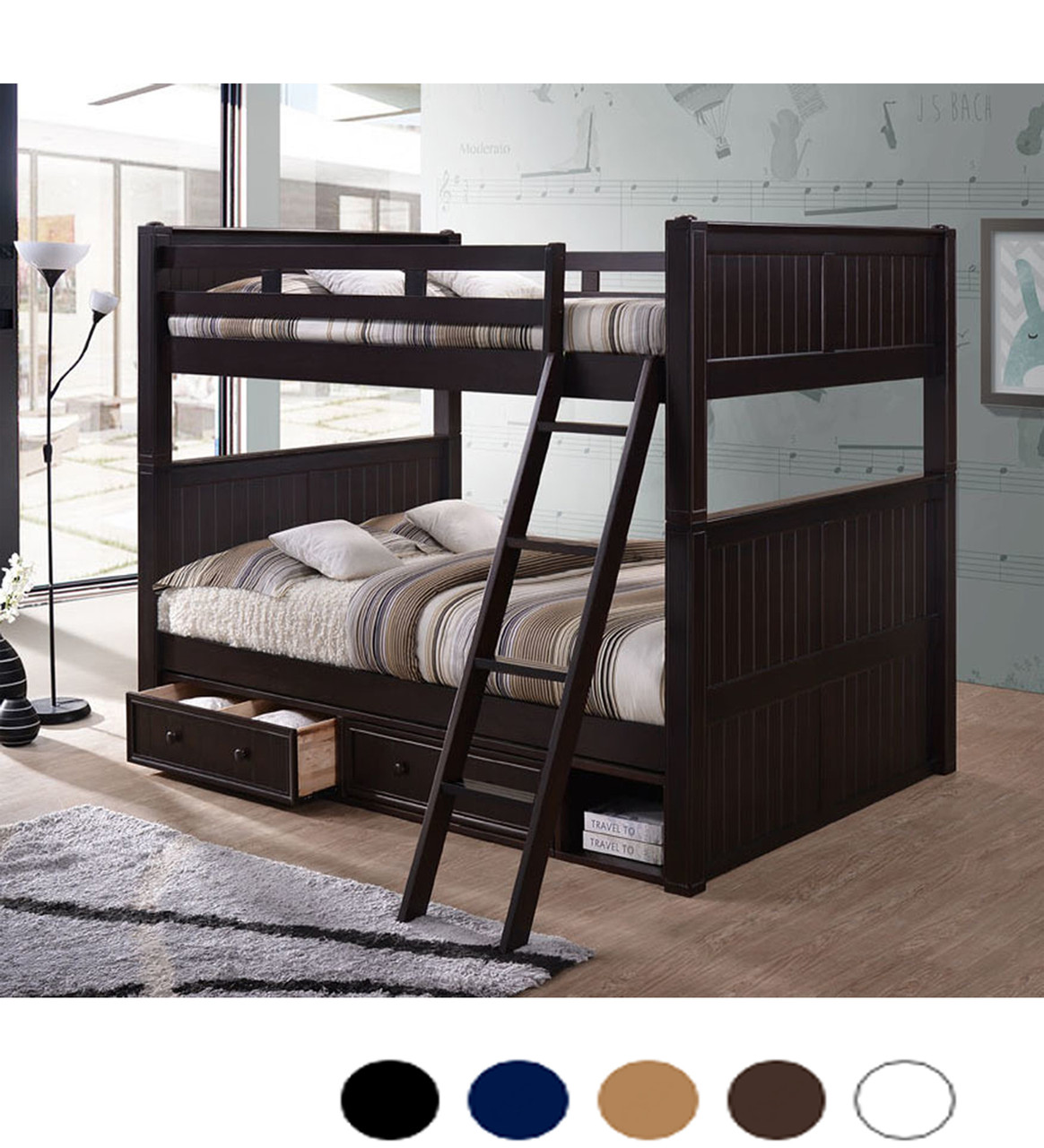 We got a queen over queen for our boys and got it in the blue. It's a beautiful piece of furniture. The boys love it. I wish o had gotten the drawers for under it, but we're still very happy with it.